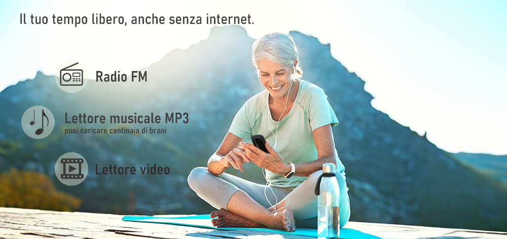 Puoi contare su una vera Radio FM sempre disponibile, anche senza gli appositi auricolari oppure caricare con facilità centinaia di brani MP3 e ascoltare la tua musica.