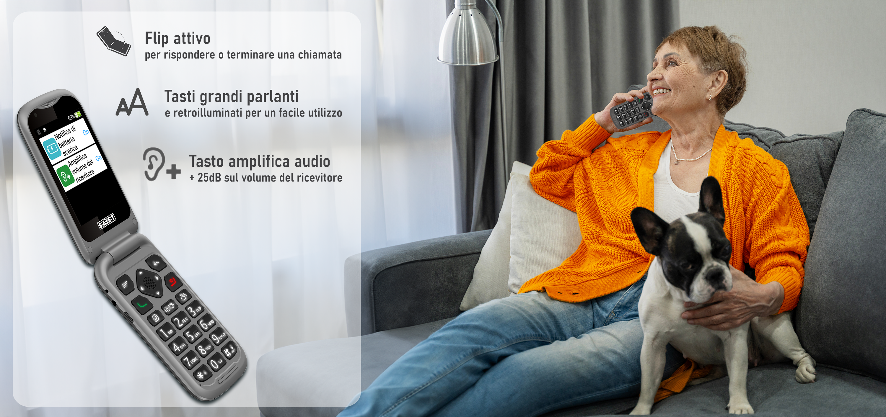 Inoltre puoi alzare il volume della tua telefonata fino a 25dB in più, per sentire bene la conversazione.