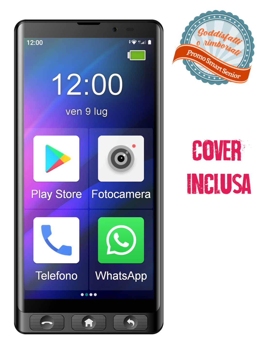 PROMO SODDISFATTI O RIMBORSATI: acquista uno Smart Senior STS502 o STS550 e goditi tutte le funzionalità di uno smartphone. Oltre alla garanzia di 24 mesi, per il primo anno in caso di guasto ti sostituiamo il telefono con uno nuovo.