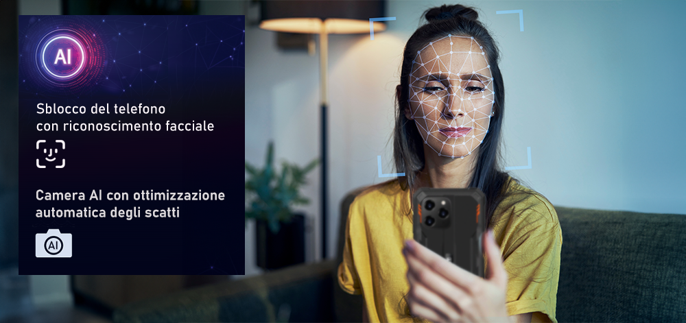 Inoltre la fotocamera, potenziata dall'AI, si adatta automaticamente a diverse condizioni ambientali, ottimizzando impostazioni come l'illuminazione, il contrasto e la saturazione per catturare foto di alta qualità in qualsiasi scenario.