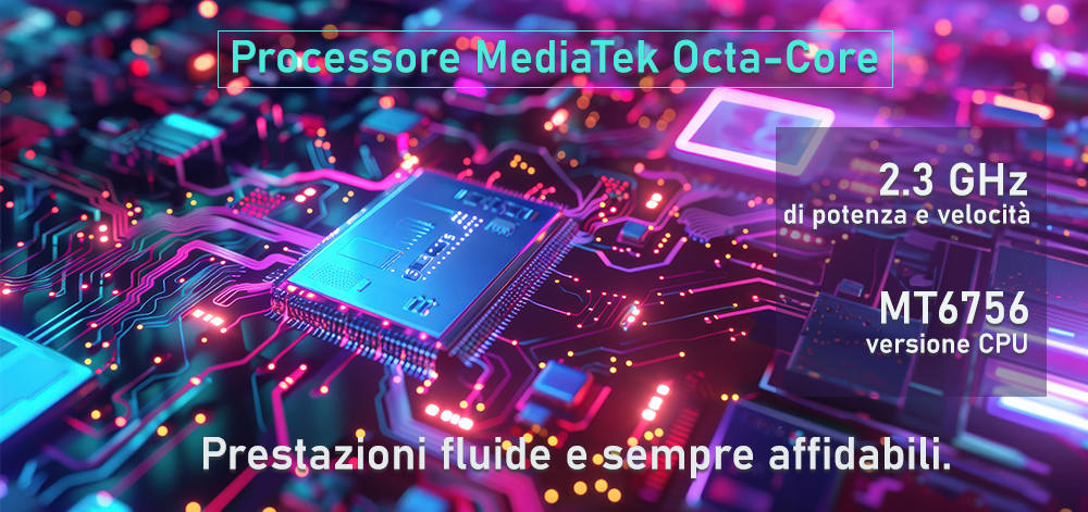 Il processore MT6765 è una combinazione di potenza ed efficienza energetica. Con otto piccoli circuiti (Octa Core) in grado di operare contemporaneamente, la CPU di Sicuro Smart STS602 è in grado di gestire con facilità più attività insieme e applicazioni che richiedono molte risorse del dispositivo, garantendo prestazioni fluide e reattive, ad una velocità di 2.3 GHz.